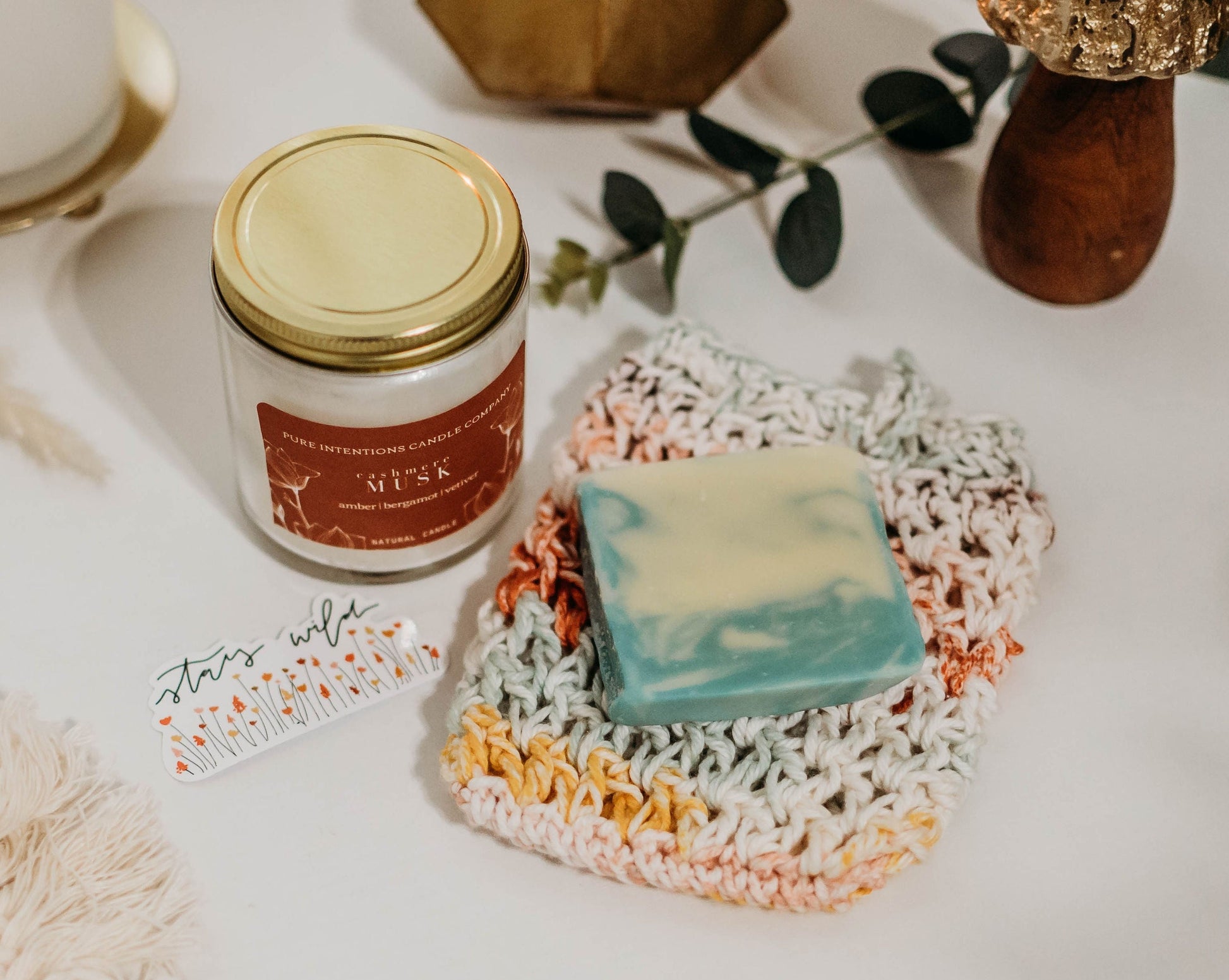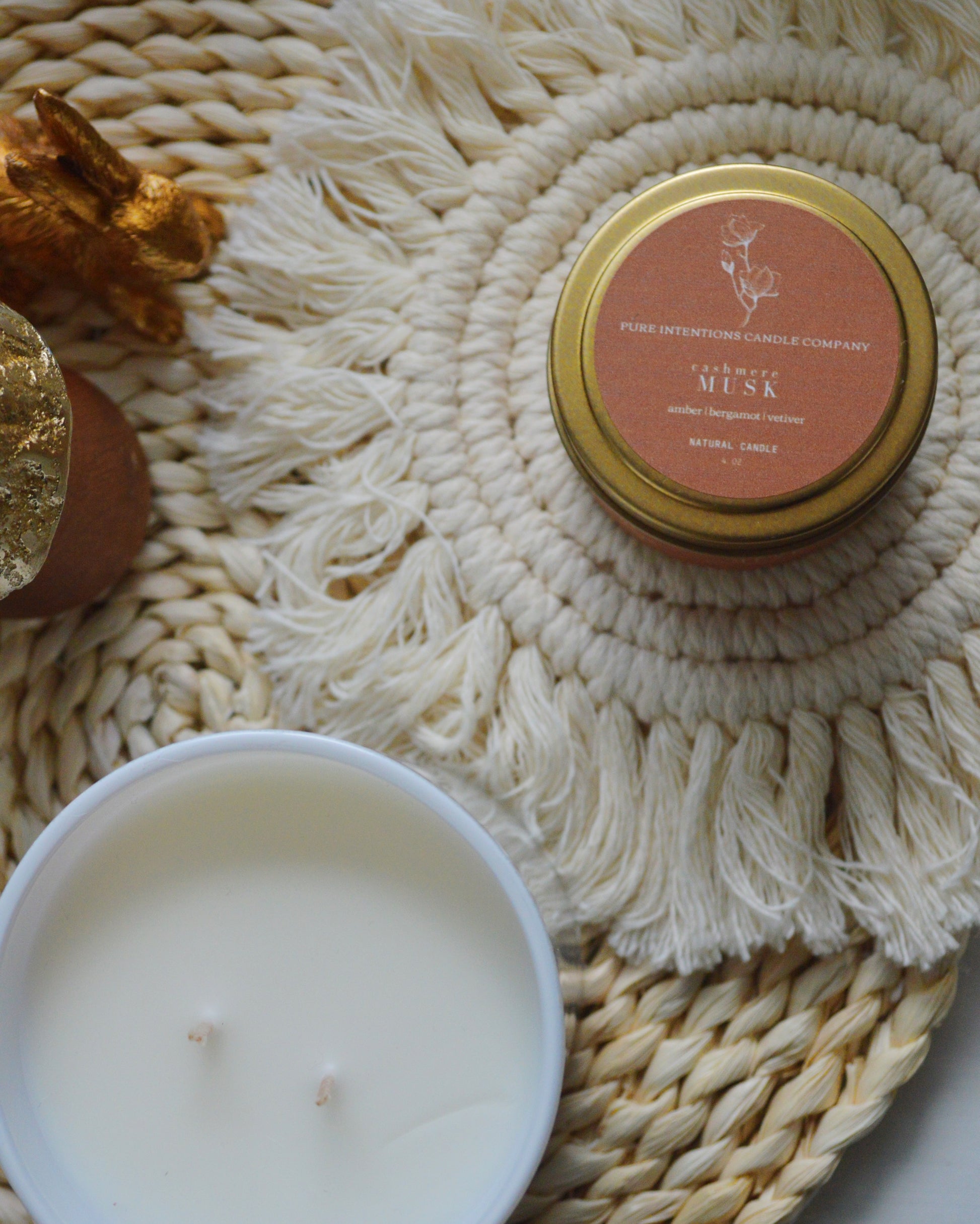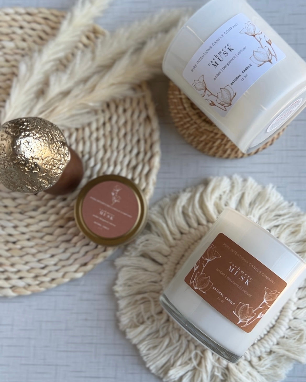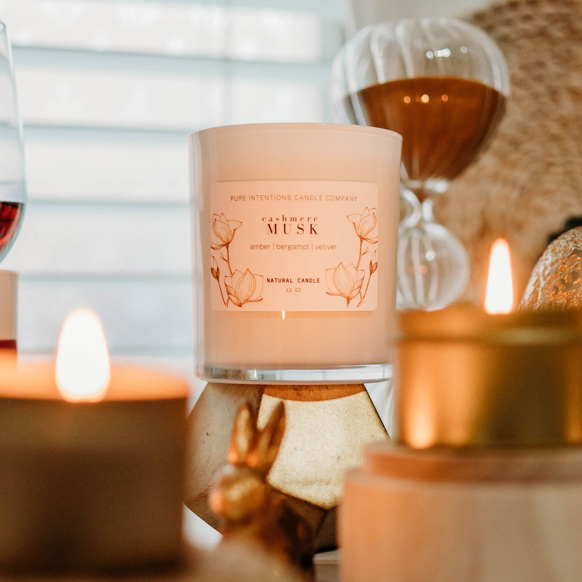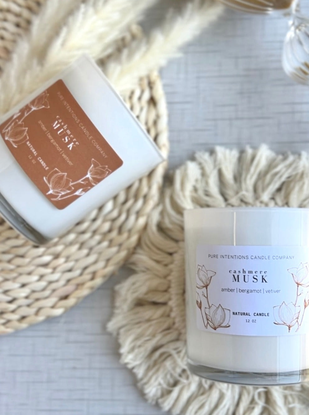 Surrender to the luxurious embrace of spring with our Cashmere Musk candle. Rich amber intertwines with invigorating bergamot and grounding vetiver, enveloping you in a soothing cocoon of warmth and comfort, like a gentle breeze on a tranquil spring day.