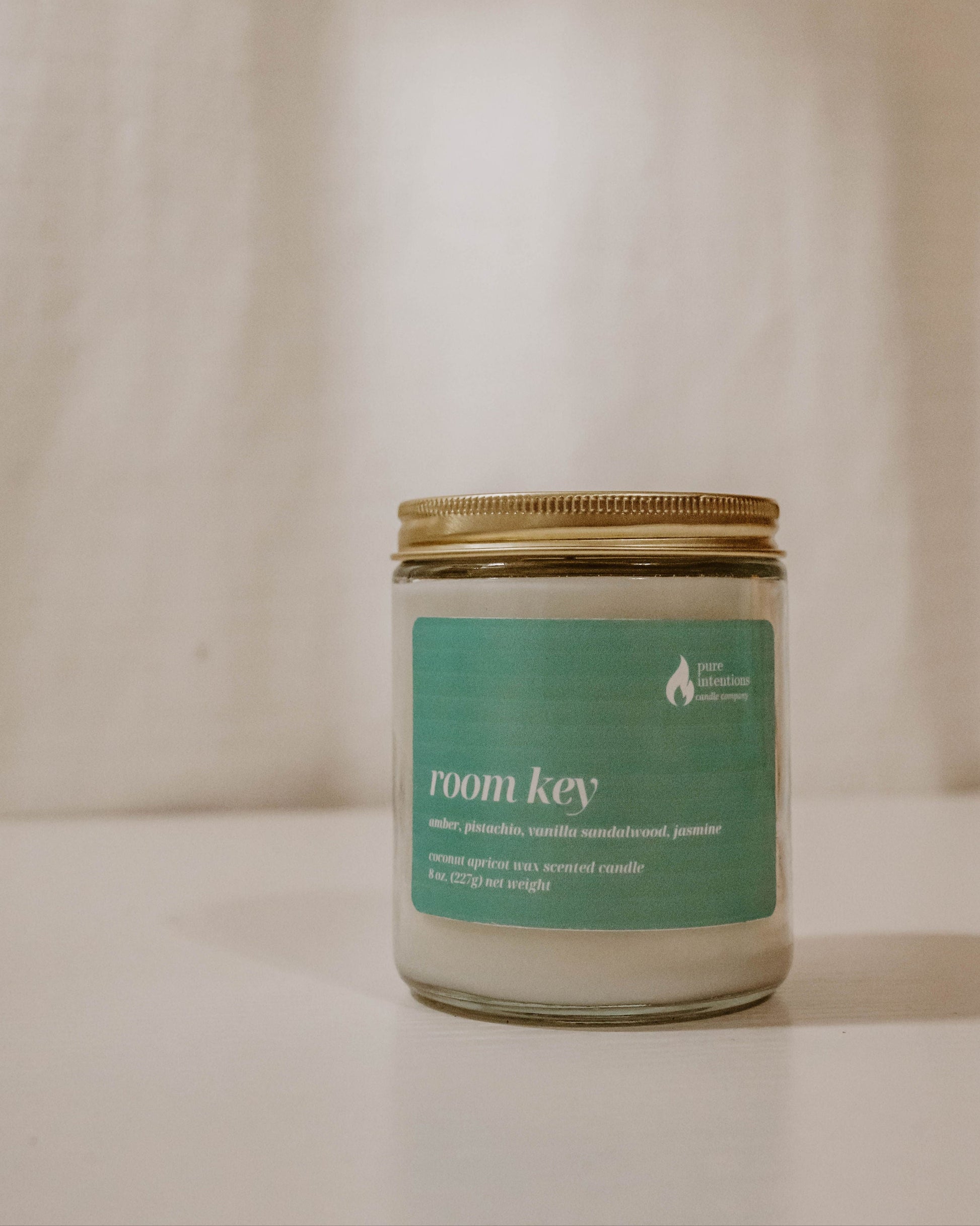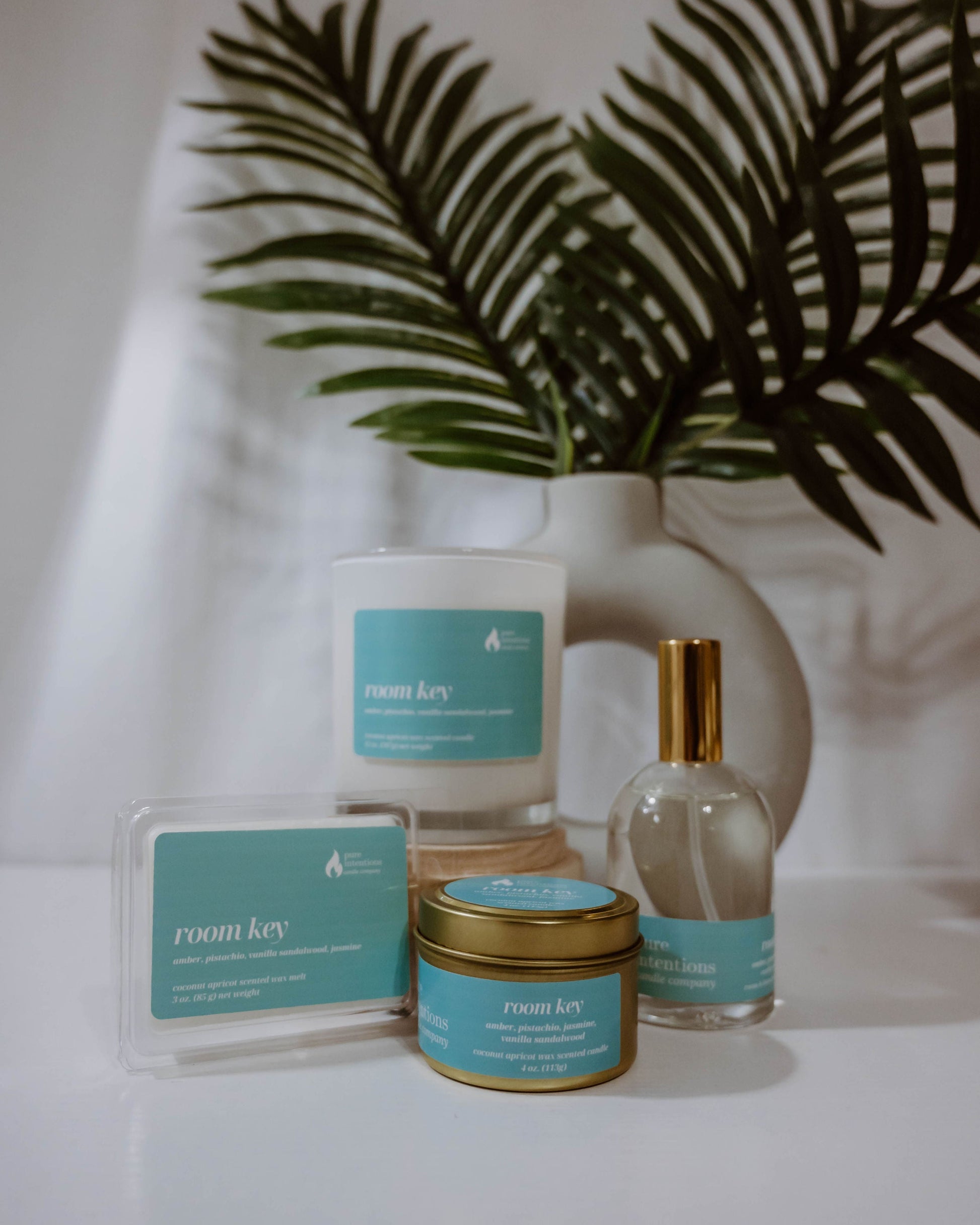 Flirty and indulgent, Room Key is your soft landing after a day in the sun. Warm amber and smooth pistachio melt into vanilla sandalwood and soft jasmine, creating a scent that lingers like golden hour light on skin. It’s the scent of a private suite, fluffy robes, and summer nights in.