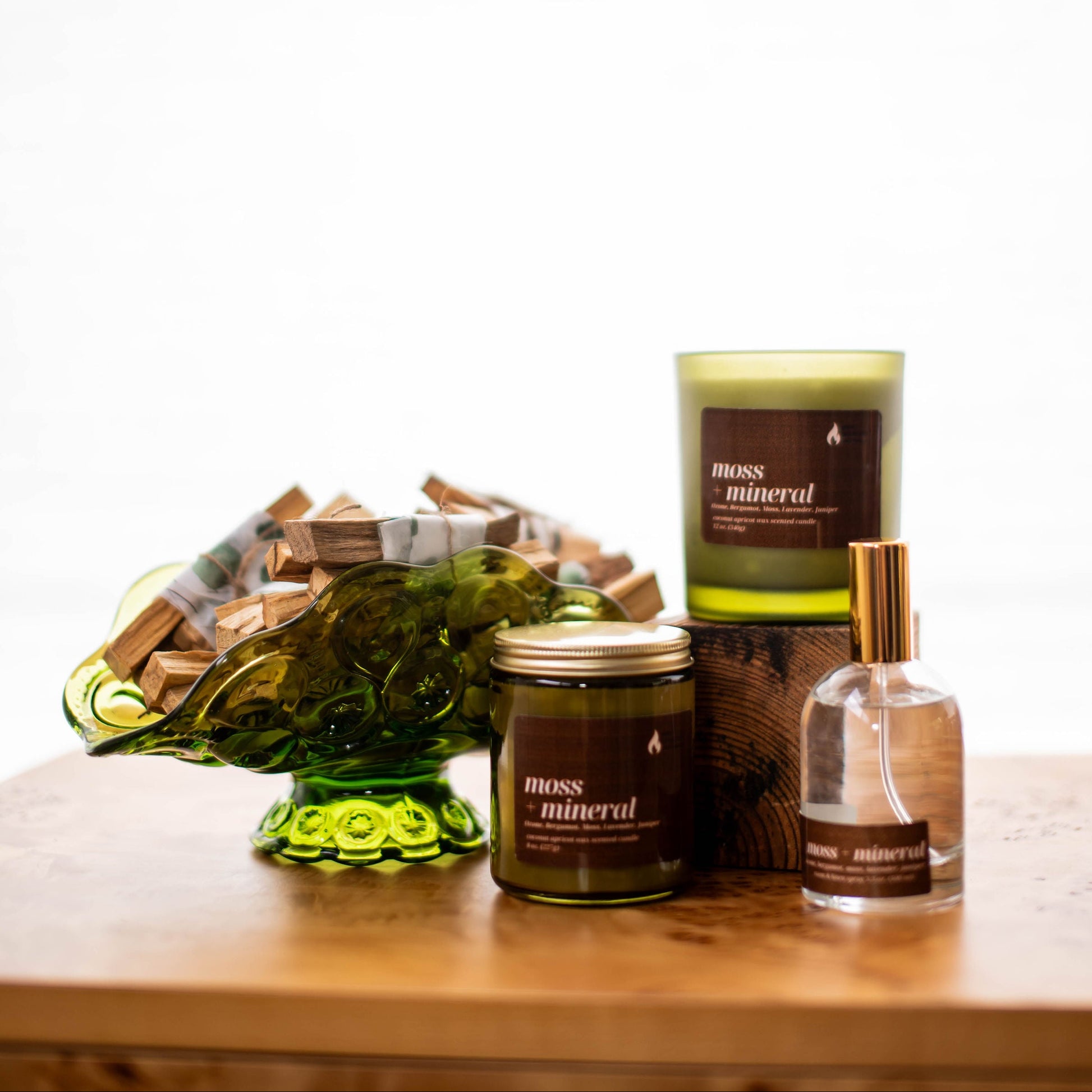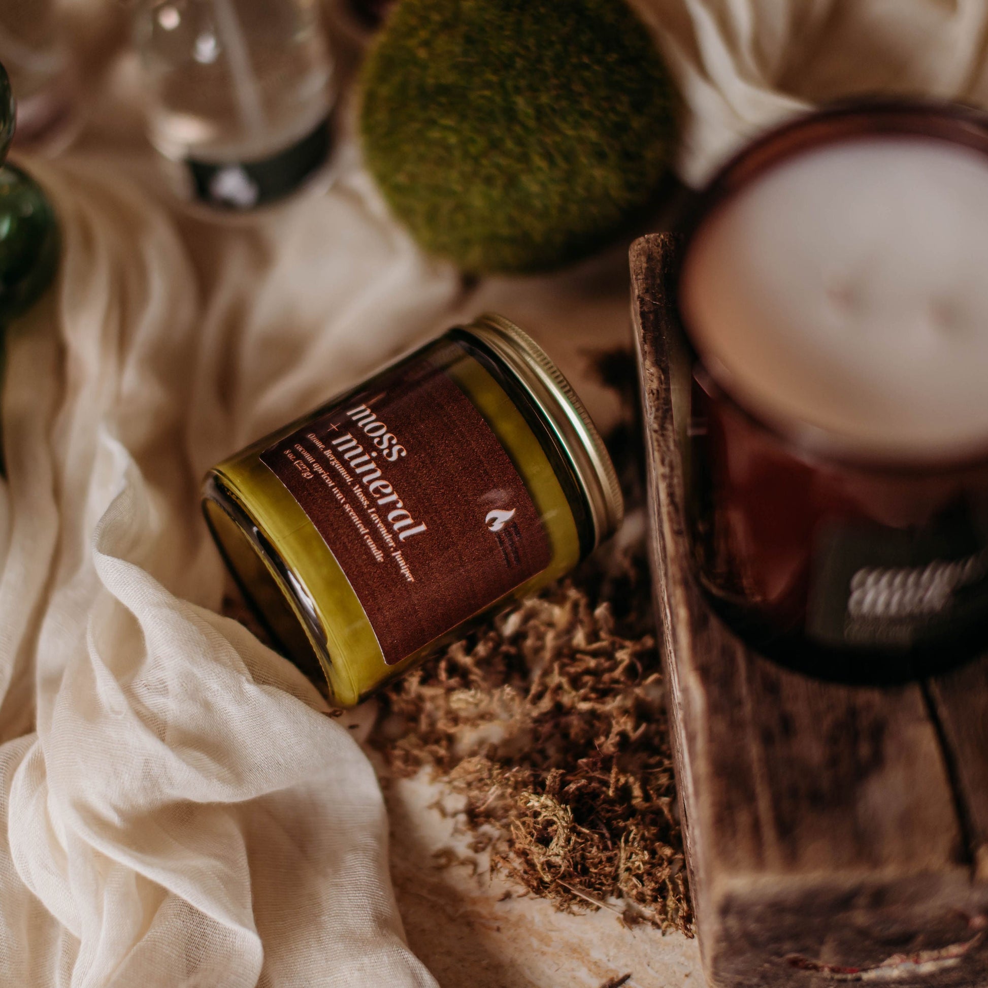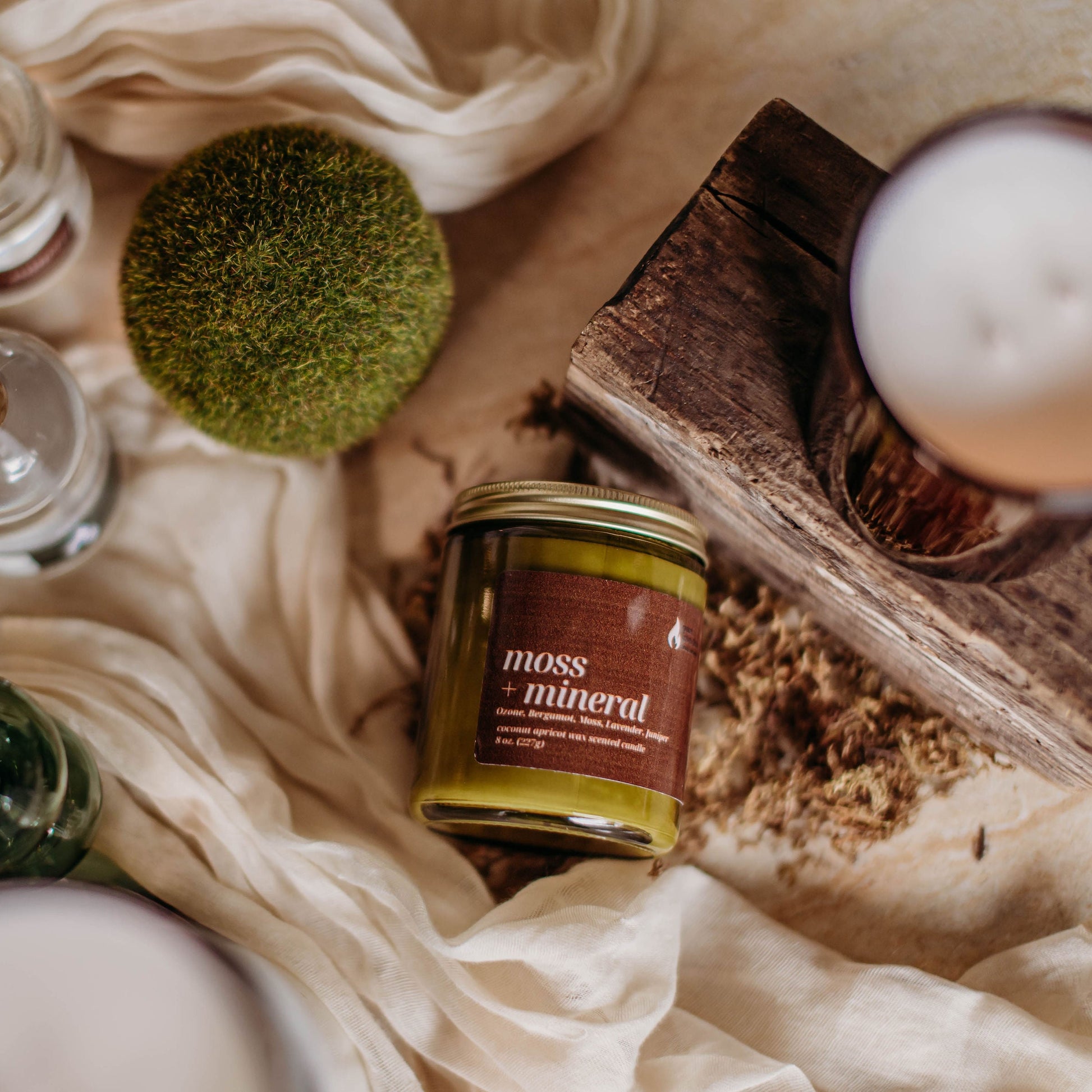 Cool air. Damp stone. Ancient moss underfoot. Moss + Mineral captures the clarity of the forest floor after rainfall—fresh ozone and sparkling bergamot lift through grounded moss and floral lavender. It’s clean, calm, and naturally meditative. Light it when you want to reconnect, reset, and let nature hold your thoughts.