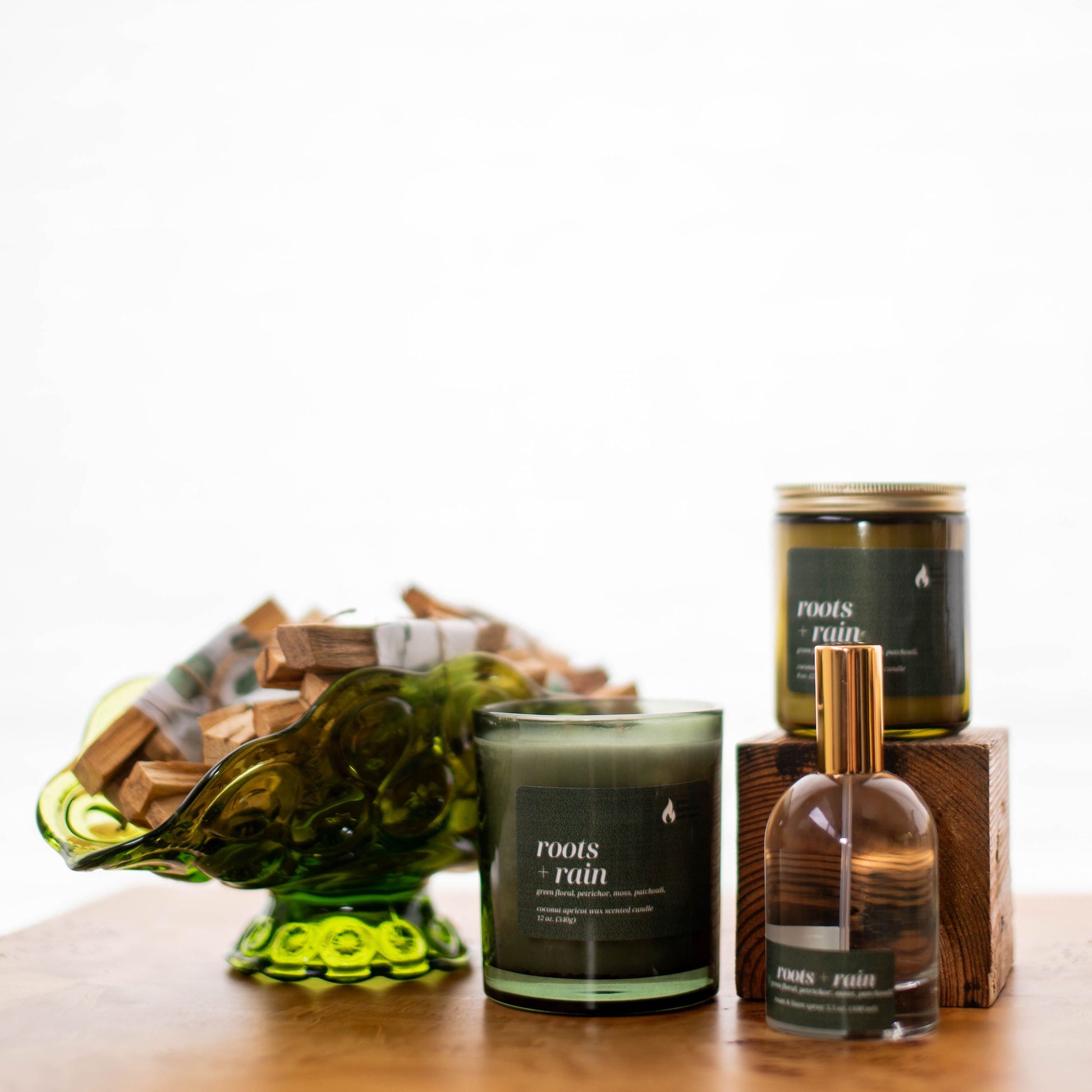 The scent of fresh rain meeting the earth. Roots + Rain blends dewy green florals with the unmistakable depth of petrichor—moss-covered stone, patchouli-rich soil, and the hush of everything being washed clean. It’s an ode to becoming—rooted and wild, soft and strong. Like nature, you’re allowed to start again.