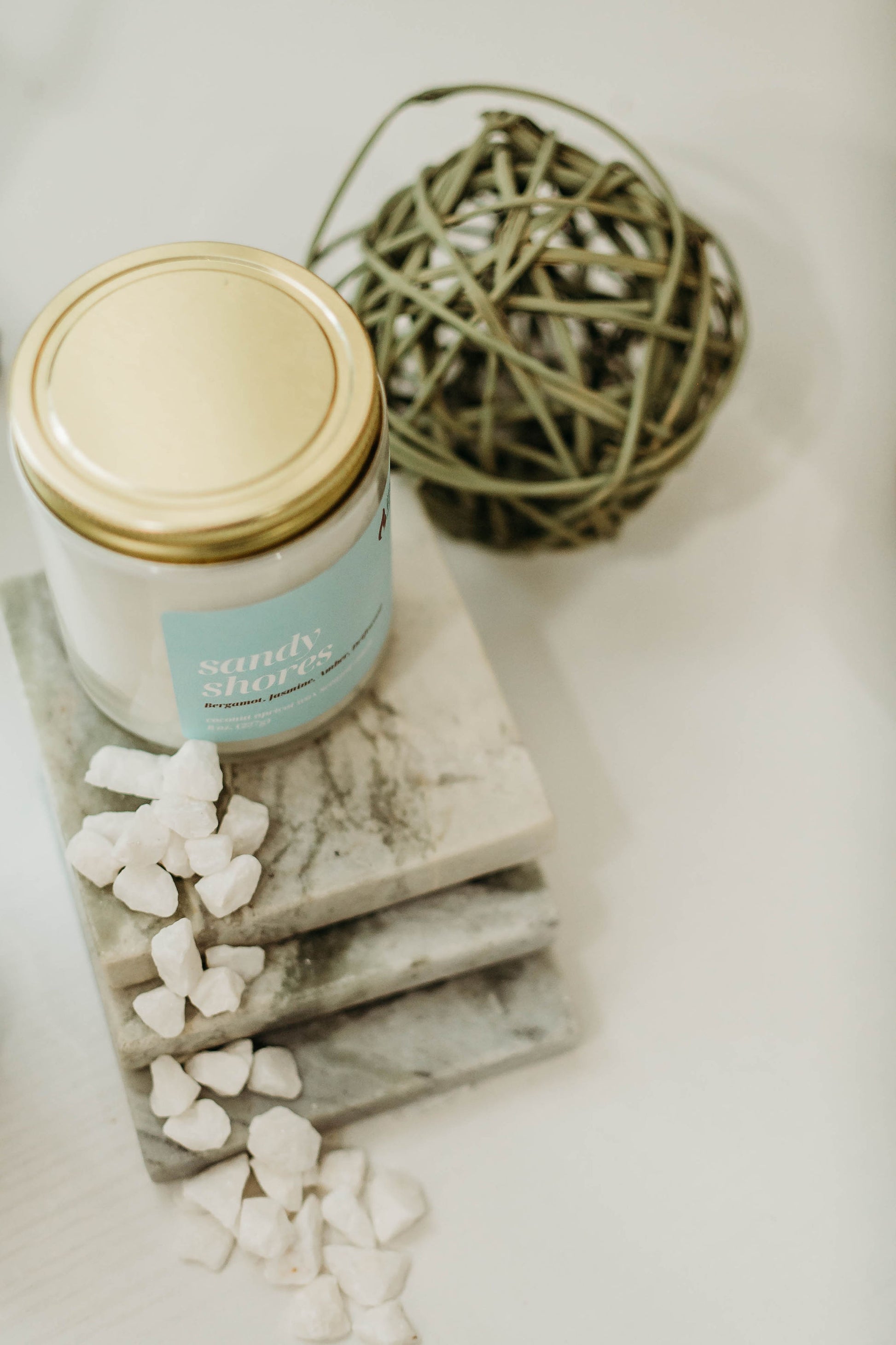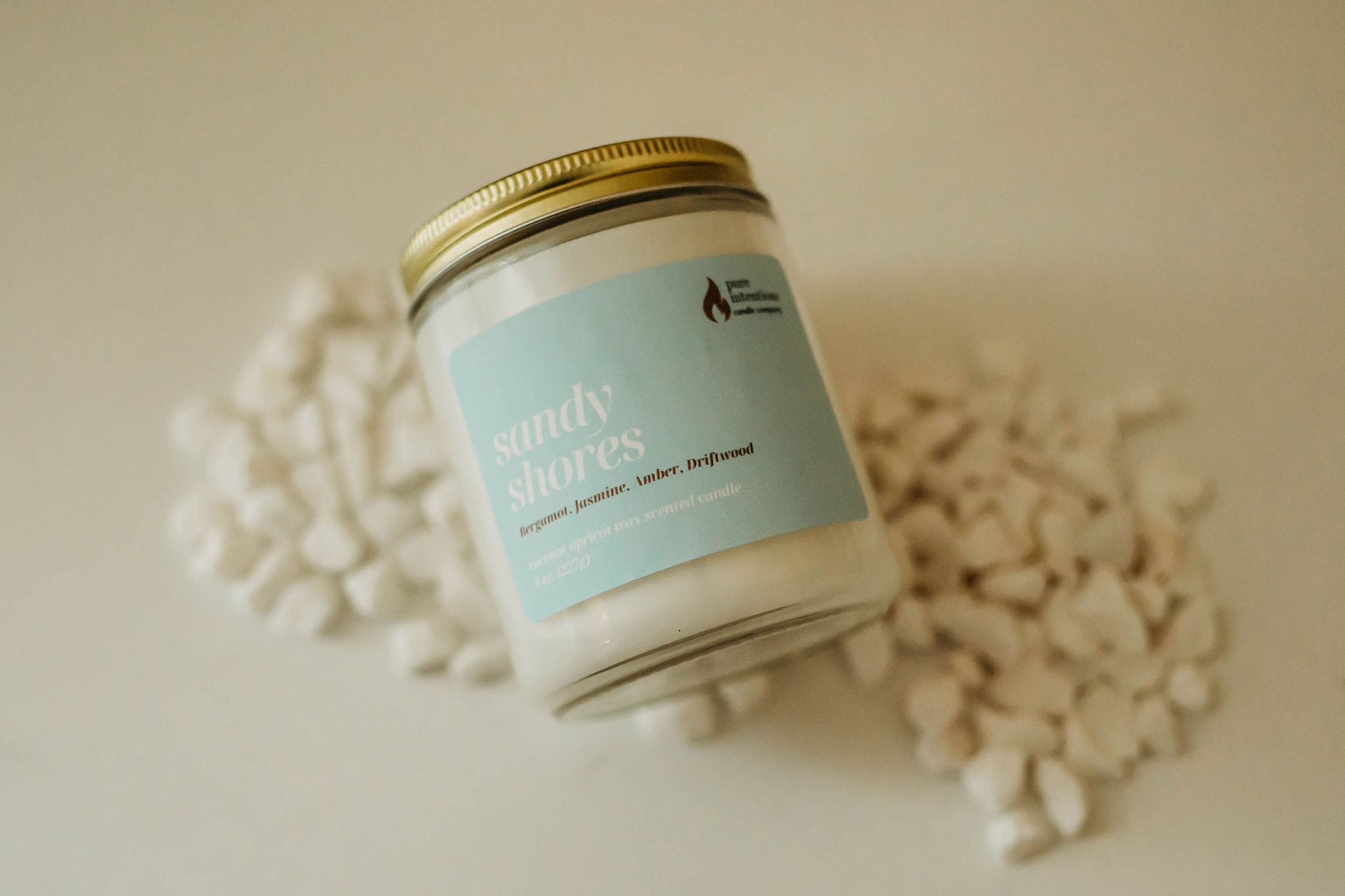 Escape to a serene seaside with our Sandy Shores candle. Fresh bergamot and delicate jasmine harmonize with the warmth of amber and the rustic charm of driftwood, transporting you to a tranquil beach where the waves gently kiss the shore.