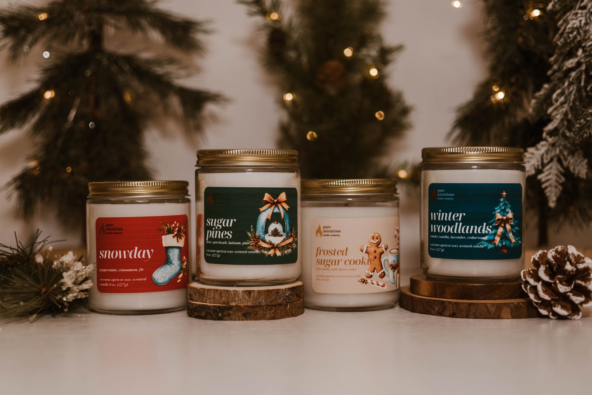 Available in wax melts, 4 oz tin, and 8 oz jar, our Coconut Wax Candles are hand-poured to fill your home with warmth and cheer. From smaller spaces to open rooms, each candle is crafted to create a bright, wintry ambiance with a clean burn and long-lasting fragrance.